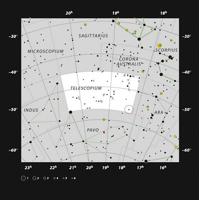 «Мы были очень удивлены, когда поняли, что это первая звездная система с черной дырой, которую можно увидеть невооруженным глазом, — говорит Петр Хадрава, заслуженный деятель науки и соавтор исследования. — Расположенная в созвездии Телескоп, система настолько близка к нам, что ее звезды можно увидеть с южного полушария темной ясной ночью без бинокля или телескопа».