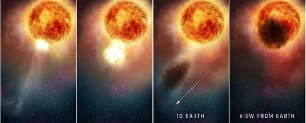 «Образовавшееся облако блокирует свет примерно с четверти поверхности звезды, — говорится в заявлении Европейского космического агентства. — С помощью телескопа Хаббл смогли увидеть материал, покидающий видимую поверхность звезды и уходящий через атмосферу до того, как образовалось пыльное облако».
