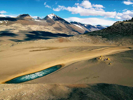 Но Сухие долины Мак-Мердо язык не повернется назвать оазисом. Они образованы скалистыми грядами, спускающимися к Южному океану в районе острова Джеймса Росса (не путать с островом Росса в составе архипелага Шпицберген). Если посмотреть на Антарктиду, расплющенную любой картографической проекцией, это будет ее правый краешек – практически край мира. С антарктического купола круглый год «стекают» к океану катабатические ветра (от греч. κατάβασις – «спуск, снижение»). От центра к периферии они разгоняются, и тут-то им на пути попадаются долины Мак-Мердо. В узкие, по сравнению с простором ледника, ложбины между скал ветер врывается уже на скорости до 320 км/ч. Быстрее на нашей планете ветра нет. Всю влагу отсюда мгновенно сдувает. Жизнь здесь еще беднее, чем в остальной Антарктиде. В порах камней живут экстремофильные бактерии-эндолиты. Под ледником в долине Тейлора скрываются мировые знаменитости – железобактерии, от чьей деятельности тут появился Кровавый водопад. А вот небольшая долина Университета заслужила звание самого безжизненного места на планете. В 2015 году группа ученых из США и Канады под руководством Жаклин Гоордиал (Jacqueline Goordial), взяв образцы грунта с глубины около полуметра из этой долины, не смогла обнаружить там никаких микроорганизмов – ни бактерий, ни грибов, ничего.