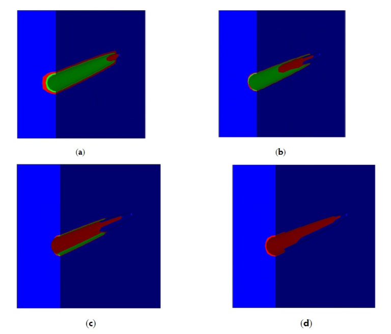 Визуализация возможных зон разрушения горных пород при просадке дифференциального давления 0 МПа (a), 3 МПа (b), 6 МПа (c) и 9 МПа (d). Фото: пресс-служба ПНИПУ