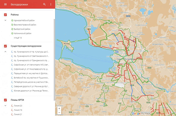 До конца июля обещают сделать велодорожки на набережной Фонтанки, Петроградской стороне и по маршруту «Станция метро „Крестовский остров“ — Гренадерский мост». Велодорожки от Гражданского проспекта до Гренадерского моста и по проспекту Луначарского от Выборгского шоссе до улицы Руставели построят до конца лета. Оказывается у нас уже есть семь веломаршрутов. Этим летом года откроют еще пять протяженностью в 40 километров.
