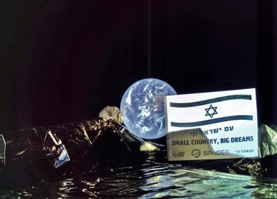 На изображении видна часть космического корабля Beresheet и Земля на заднем плане. Сигнал преодолел расстояние в 37 600 километров и