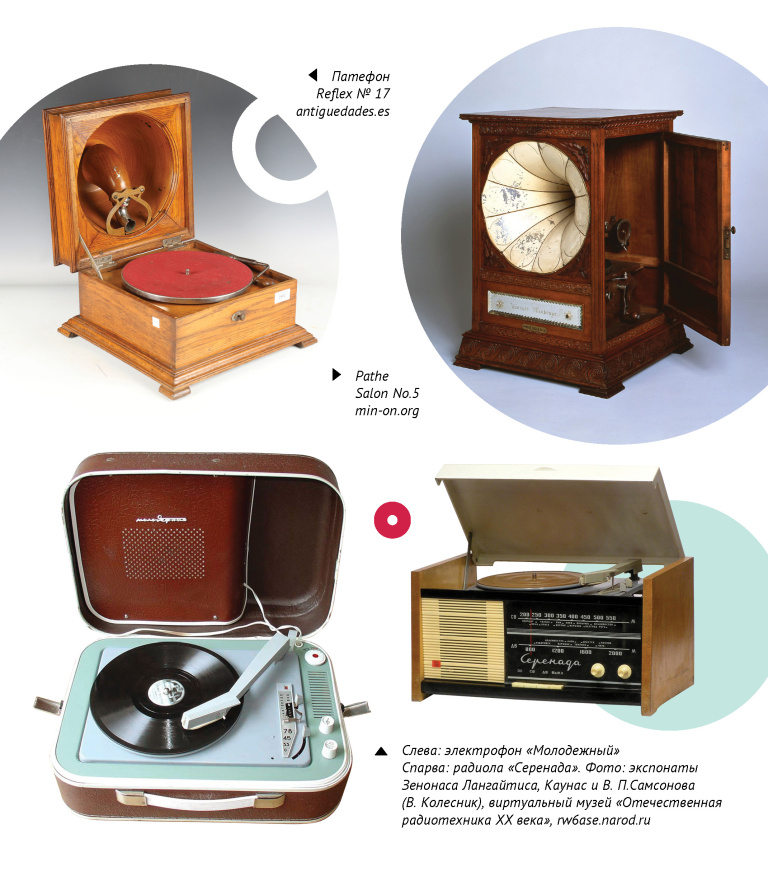Только в 50-х годах патефон уступает позиции своему электрическому собрату. Электронный патефон (электрофон), в быту называемый проигрывателем, преобразовывал механические колебания звукоснимателя в электрические для последующей обработки усилителя. Звучание стало громче, но носители остались те же.