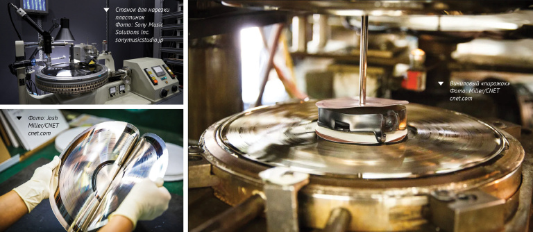 Последняя технология производства грампластинок во многом схожа с… печатью банкнот. Первым делом изготавливается диск-клише: шлифованный алюминиевый диск, как ноготь, покрывают лаком, пробивают в центре отверстие и отправляют в студию для записи. Установку для записи музыки называют токарным резцом. Роль резца исполняет игла с сапфировым наконечником. Вырезывание канавки проходит под всевидящим оком компьютера. Мини-пылесос собирает стружку. На готовом эталонном диске оператор красиво или не очень вырезает серийный номер… В общем – всё отлажено!