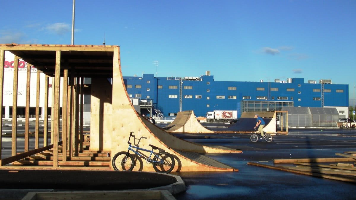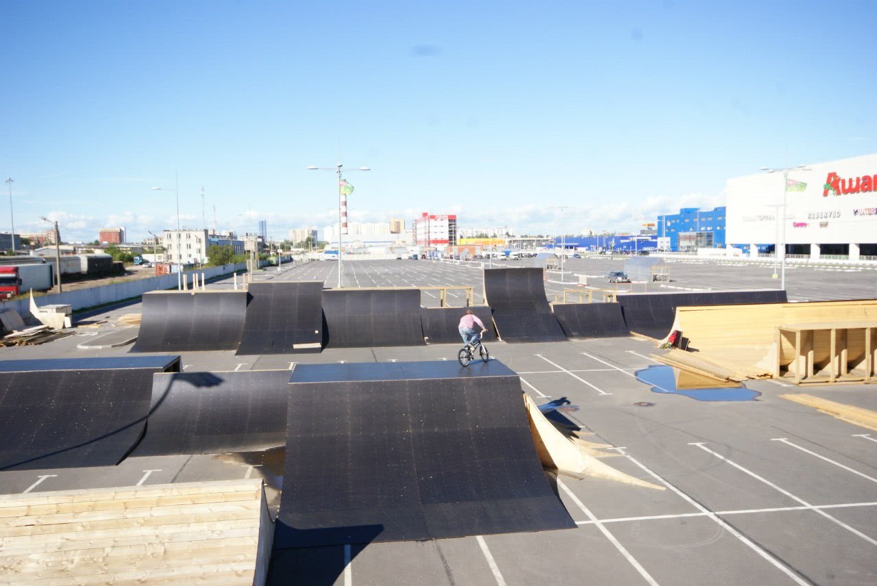 Открыли самый большой скейт-парк в центральной части России (на парковке ТРК «Лето» Пулковское шоссе). Произошло это около месяца назад. Кататься может любой желающий, в основном это скейтеры и BMX'еры, хотя приезжают и на роликах, и на самокатах, и на велосипедах. В парке есть все основные фигуры для трюков и рампы разных размеров. Есть возможности и для