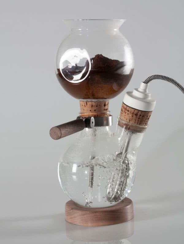 Принцип действия устройства Café Balāo прост: в нижнюю колбу заливается вода, а в верхнюю закладывается молотый кофе. Нагреваясь, вода попадает наверх, а затем через фильтры, в нижний сосуд возвращается уже ароматным напитком.