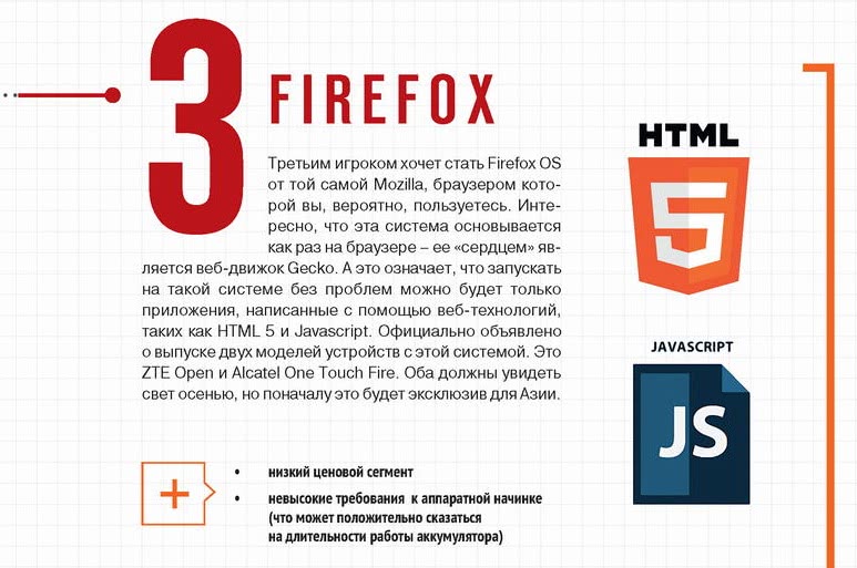 Каждая из этих трех систем имеет свой козырь, и все они сыграют по-разному. Практически все наметили свой выход на конец 2013 года. Тем временем, выполняя план ежегодного обновления, Apple выпустила бета версию iOS 7, а Google – Android 4.2. Плюс ко всему еще «живы» Blackberry OS и Belle OS (переименованная Symbian). Смогут ли новые игроки завоевать свою нишу, станет ясно совсем скоро.