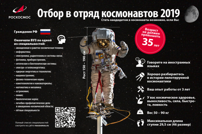 Четырех человек, соответствующих довольно жесткому списку требований, отберут в отряд космонавтов Роскосмоса к 2020 году. Кандидатам нужно знать иностранные языки, обладать высшим инженерным образованием и уметь подтягиваться минимум 12 раз.
