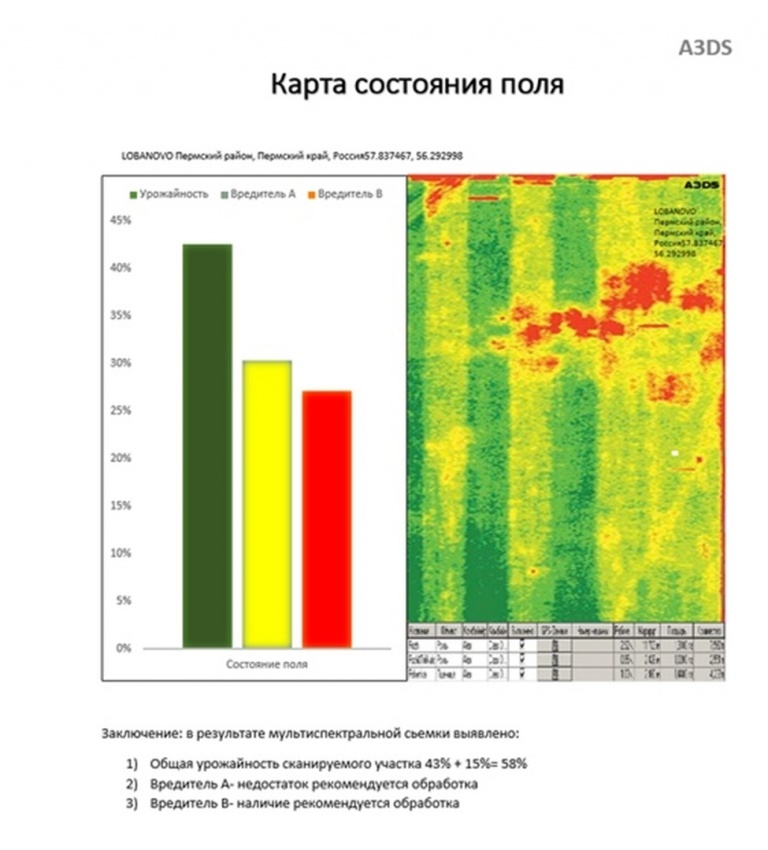 Агрономы смогут получить информацию о неоднородности посевов и наличии сорняков, а также оценить будущий урожай.