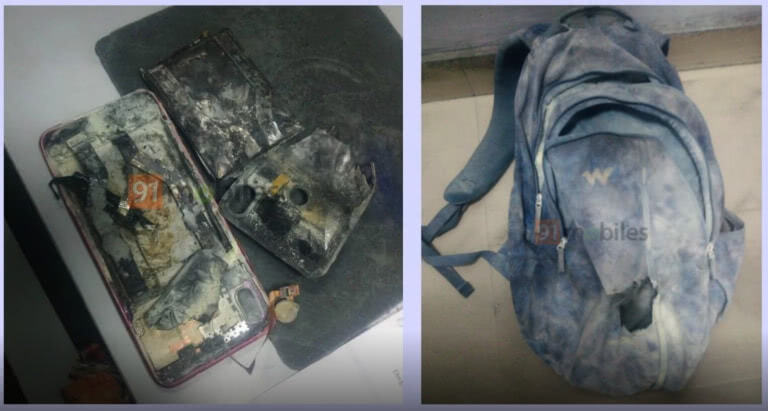 Кумар сообщил, что занимался своими делами и вдруг почувствовал необычный жар от смартфона, лежащего в отдельном кармане рюкзака. Он тут же снял рюкзак с плеч, вытащил смартфон и увидел, как из него идёт дым. Викеш бросил аппарат на землю, но он упал рядом с сумкой, взорвался и начал гореть. Вместе с ним загорелся и ранец.