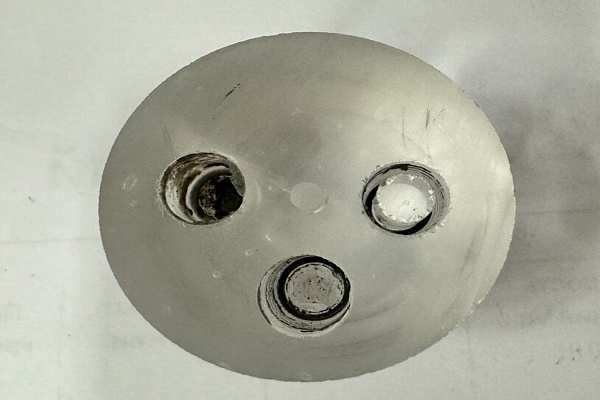 Общий вид результатов сверления отверстий в кварцевой заготовке слева. Фото: пресс-служба ПНИПУ.