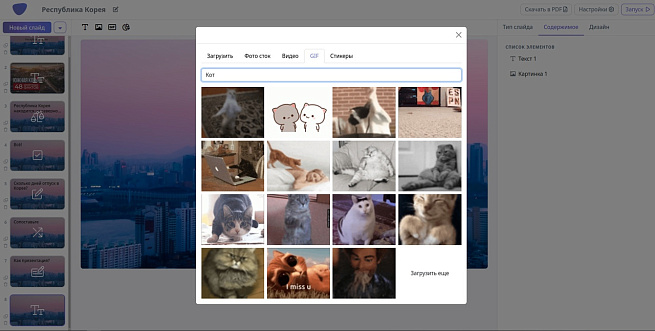 – Нейросеть сможет генерировать картинки, составлять викторины на заданную тему и генерировать контент для информационных слайдов. Благодаря этому человеку не придется тратить много времени и усилий на оформление презентации. Нейросеть сама оперативно предложит качественные и креативные варианты, подходящие под запрос, – объясняет Олег Горшков.